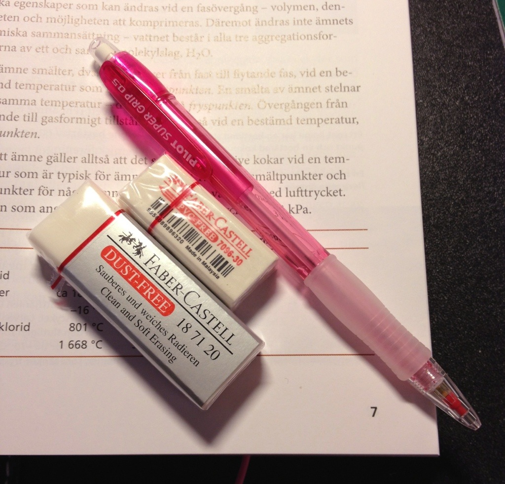 Jag hittade en butik och köpte en penna och två suddgummi, det var rätt billig faktiskt! :)