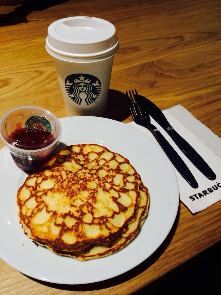 Igår fredag så hade jag tråkigt hemma så jag åkte till stan och shoppade, när jag var klar träffade jag morsan och vi gick till Starbucks för att fika och jag måste säga att de har världens bästa utbud! De kan lätt konkurrera med Espresso House och andra cafeér. Jag tog amerikanska pannkakor och morsan tog en muffin, och båda var jätte goda faktiskt! Jag älskade pannkakorna! Så ja Starbucks äger! :D