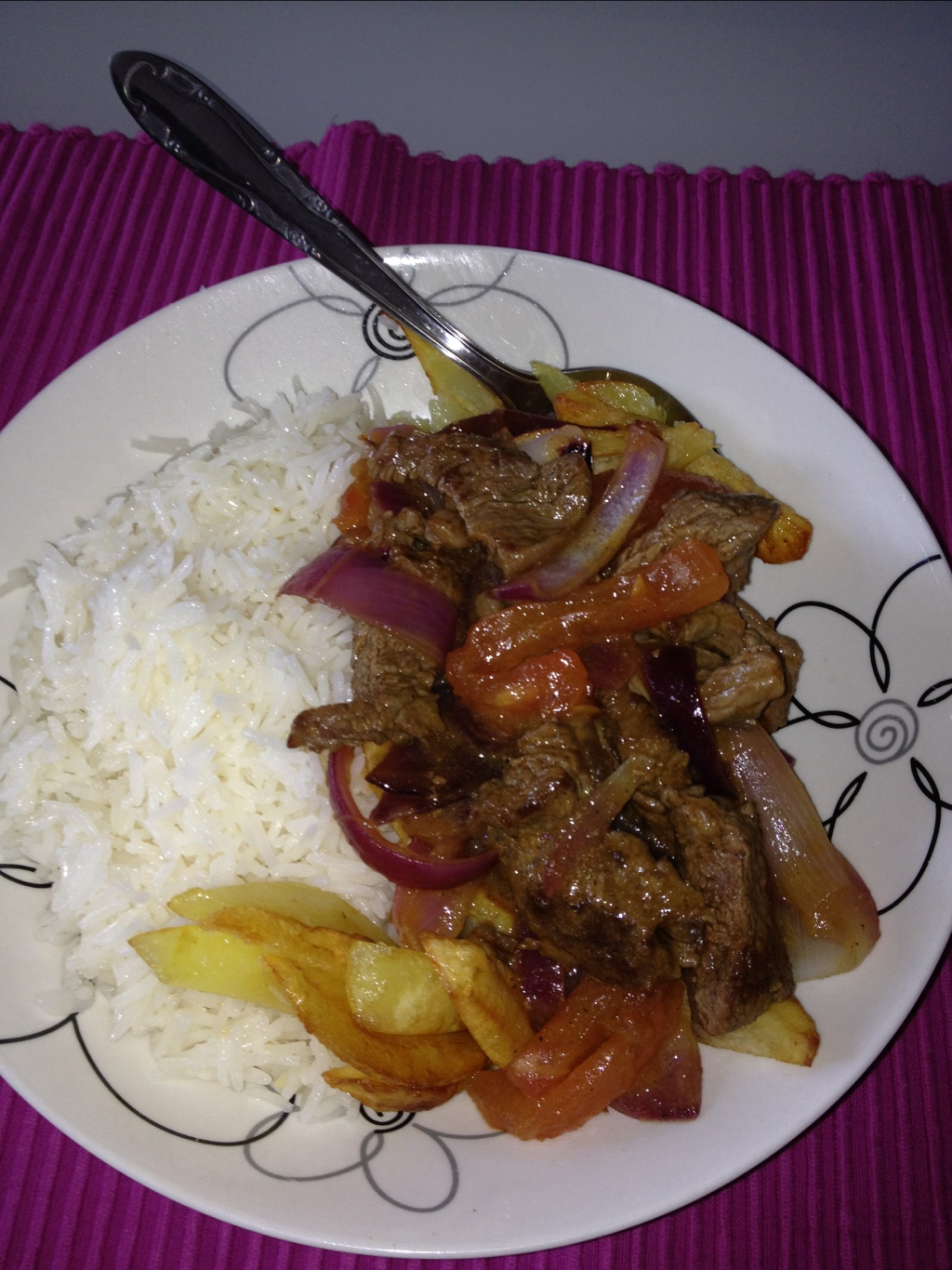 Idag skulle hon laga Lomo saltado och jag hjälpte henne att skala potatis och sånt och sen fixade hon allt annat :)